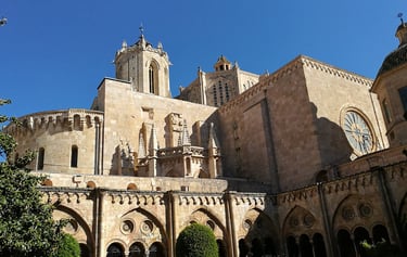 La Catedral, ubicada en la parte más alta de la colina, es el edificio más emblemático de la ciudad y contiene también el conjunto de arte medieval más rico de Tarragona. Se inició su construcción a mediados del siglo XII y se consagró en 1331, de forma que es un buen ejemplo de arquitectura de transición del románico al gótico.