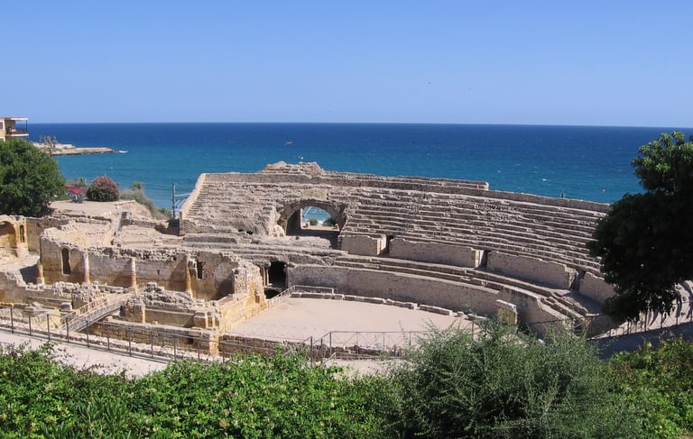 El anfiteatro era un edificio de espectáculos donde tenían lugar luchas de fieras, cacerías, ejecuciones públicas y combates de gladiadores. El de Tarraco fue construido a principios del siglo II d. C. y fue objeto de reformas en el año 221, como indica la inscripción de 140 m, la más larga de todo el Imperio, que coronaba el podio.